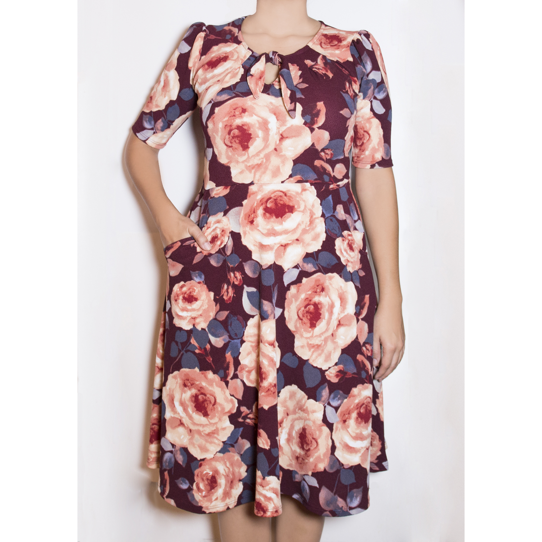 Our Sweet Pea is a gorgeous and flattering retro inspired dress. She is super comfortable and features front pockets, a tie neck at the keyhole neckline, and sleeves which hit at your elbow.