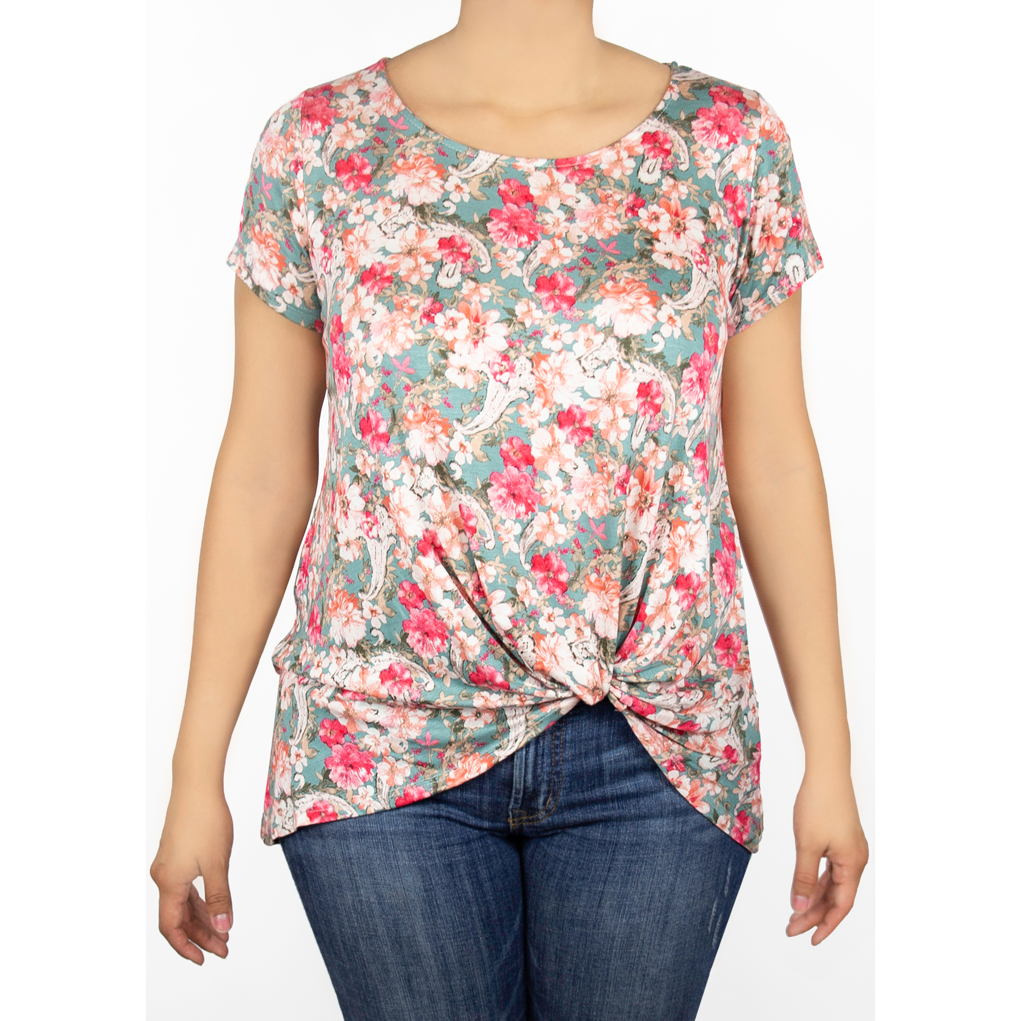 A closet must have! The Nerine Tee has a knot-front detail and is great for layering.