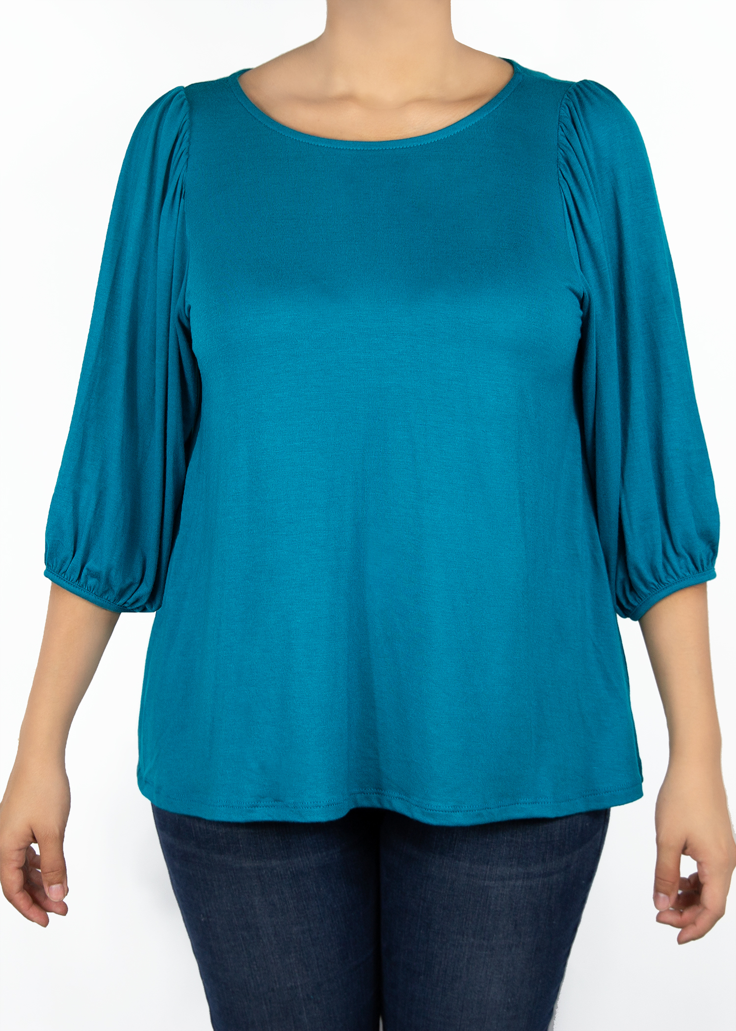 The Violet Top is a comfortable swing tee that will be a favorite in your closet! Featuring a boatneck and a 3/4 billow sleeve with elastic.