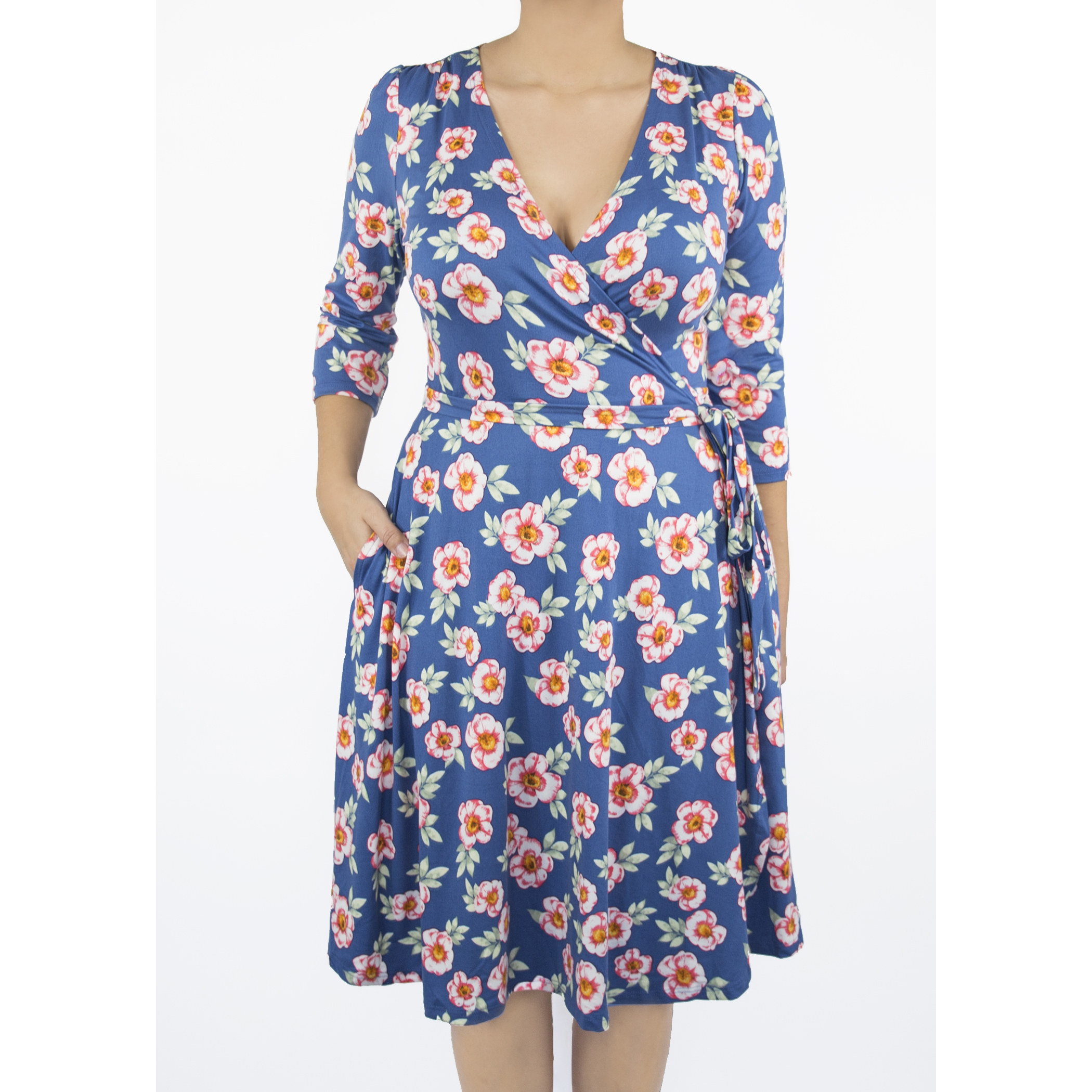 A gorgeous wrap dress, featuring 3/4 sleeves and pockets. Our Petunia is sure to be a staple in your wardrobe.