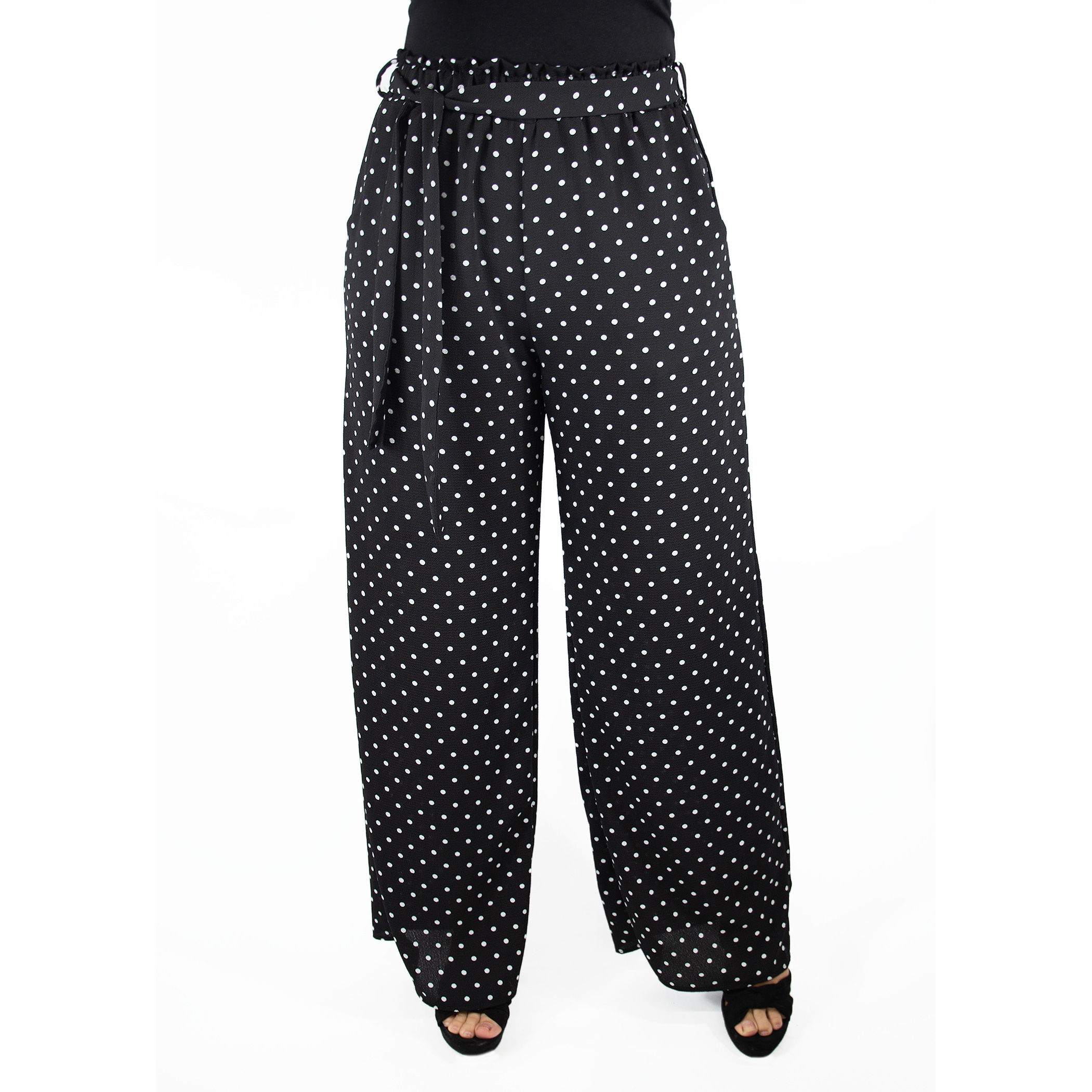 Complete with pockets! The Hydrangea is a woven palazzo pant with a tie sash and a paper bag elastic waist detail.