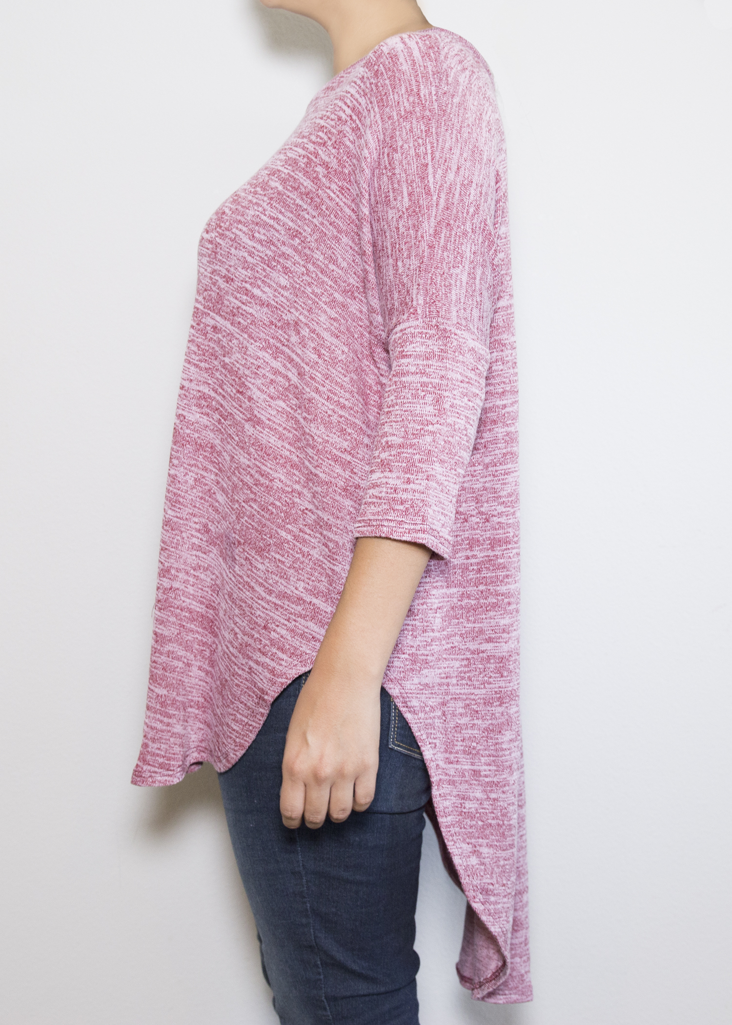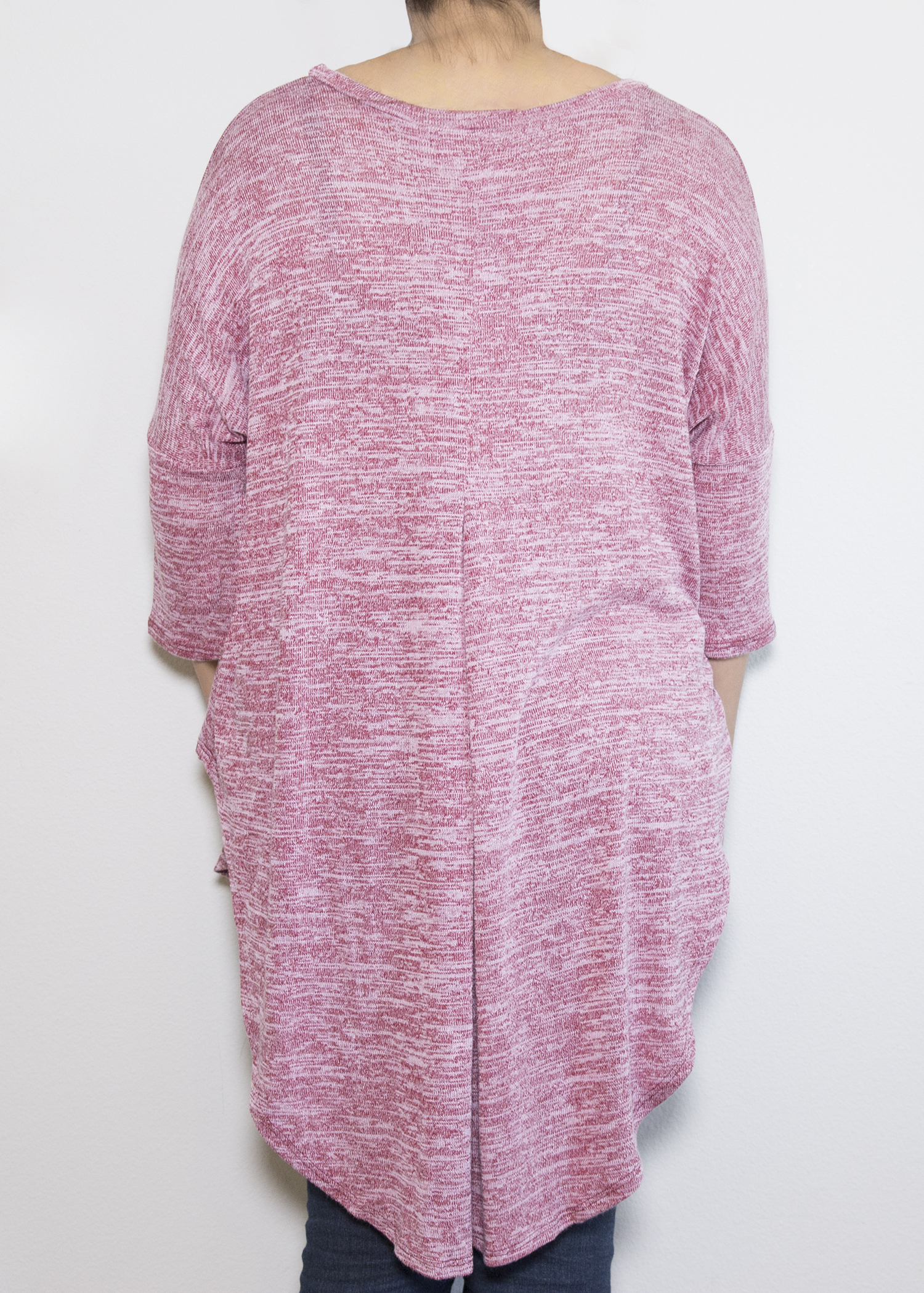 Our feminine Dolman high low with an inverted tuck on back. Great top with jeans or wear over leggings.