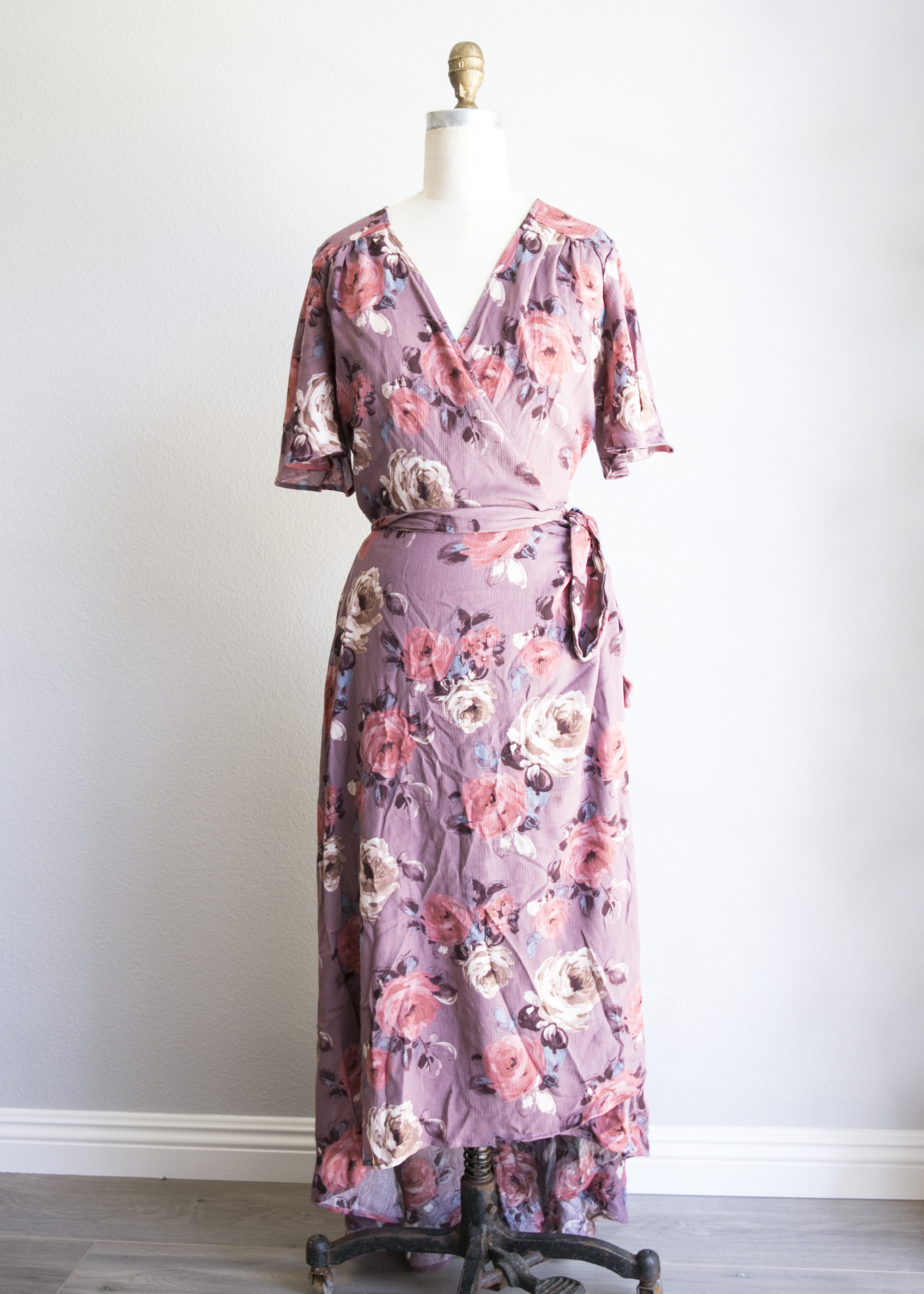 Gorgeous high low wrap dress that has flutter sleeves and pockets. Can also be worn as a kimono/cardigan/duster. Ask us how!