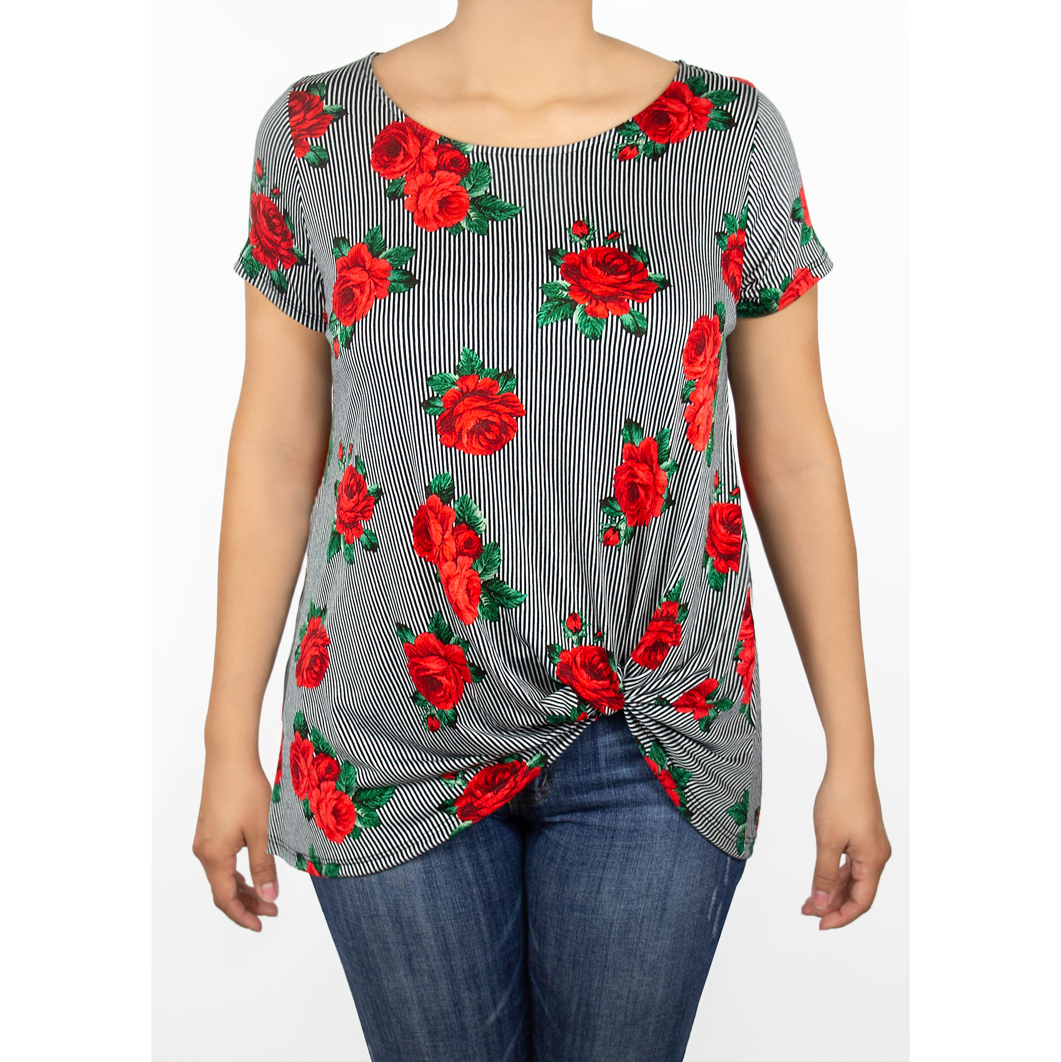 A closet must have! The Nerine Tee has a knot-front detail and is great for layering.