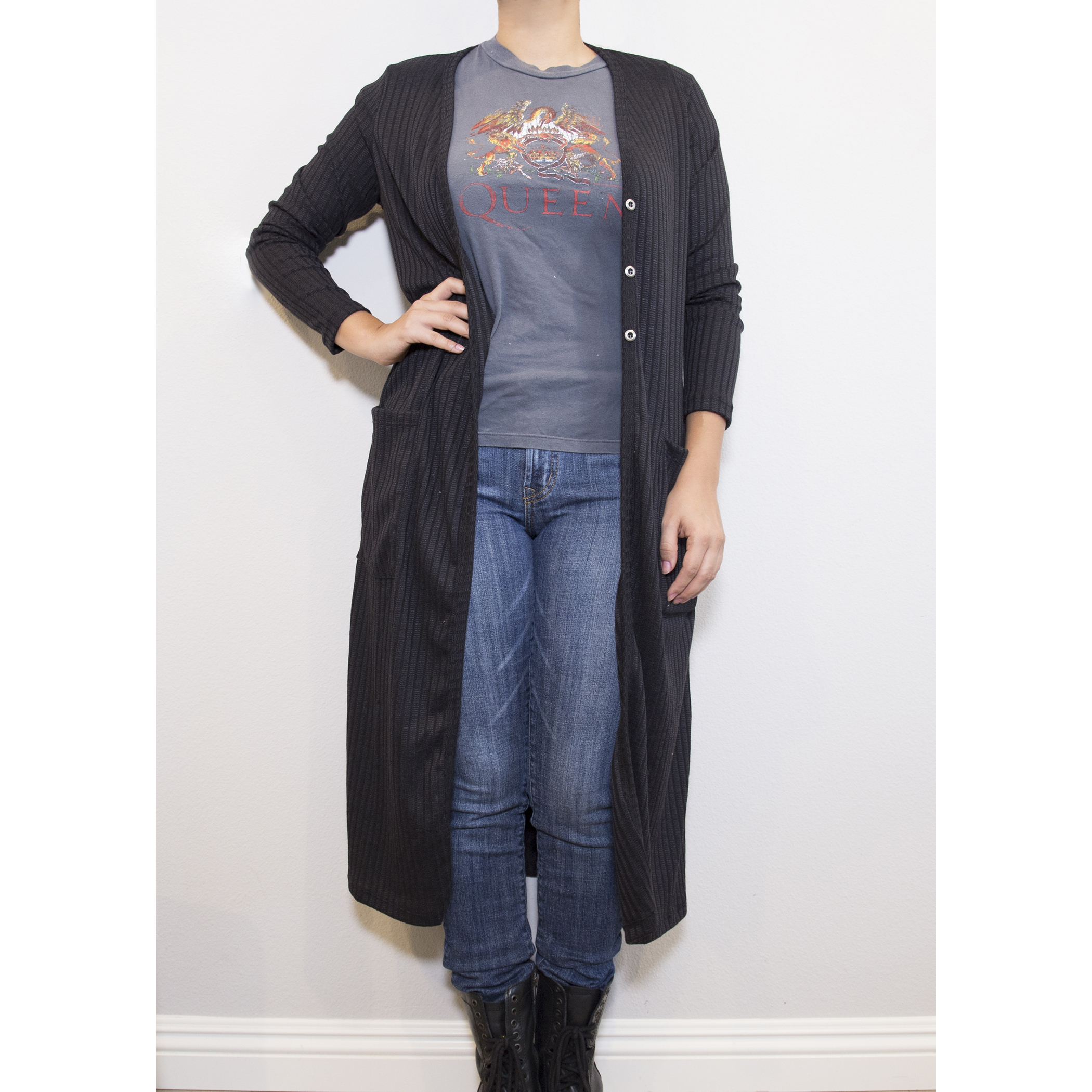 Long sleeve cardigan that features 3 small buttons on the front and pockets (of course!)