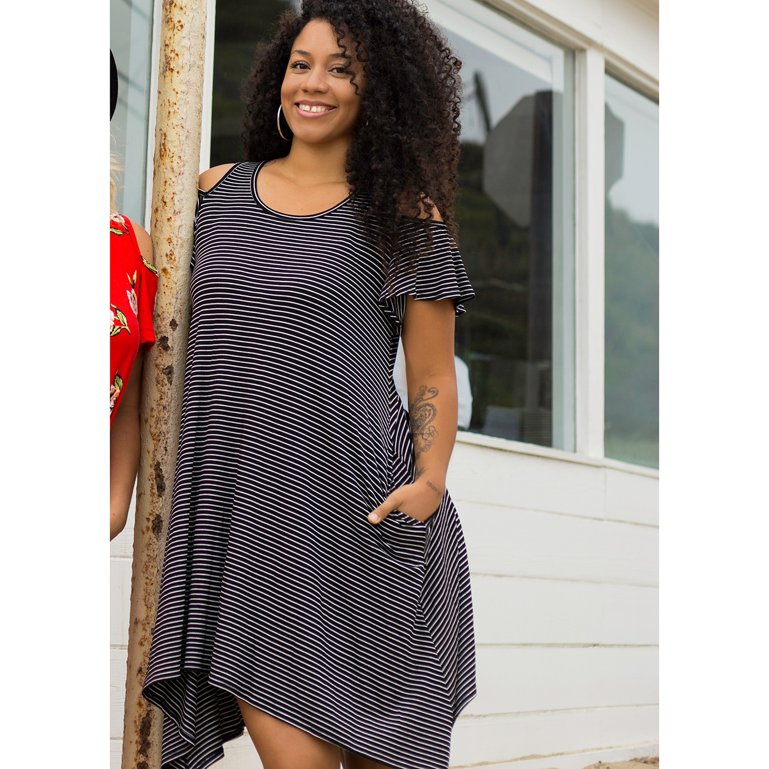 The ideal cold shoulder dress, Azalea features cute flutter sleeves and pockets. Wear as a dress or throw leggings underneath!