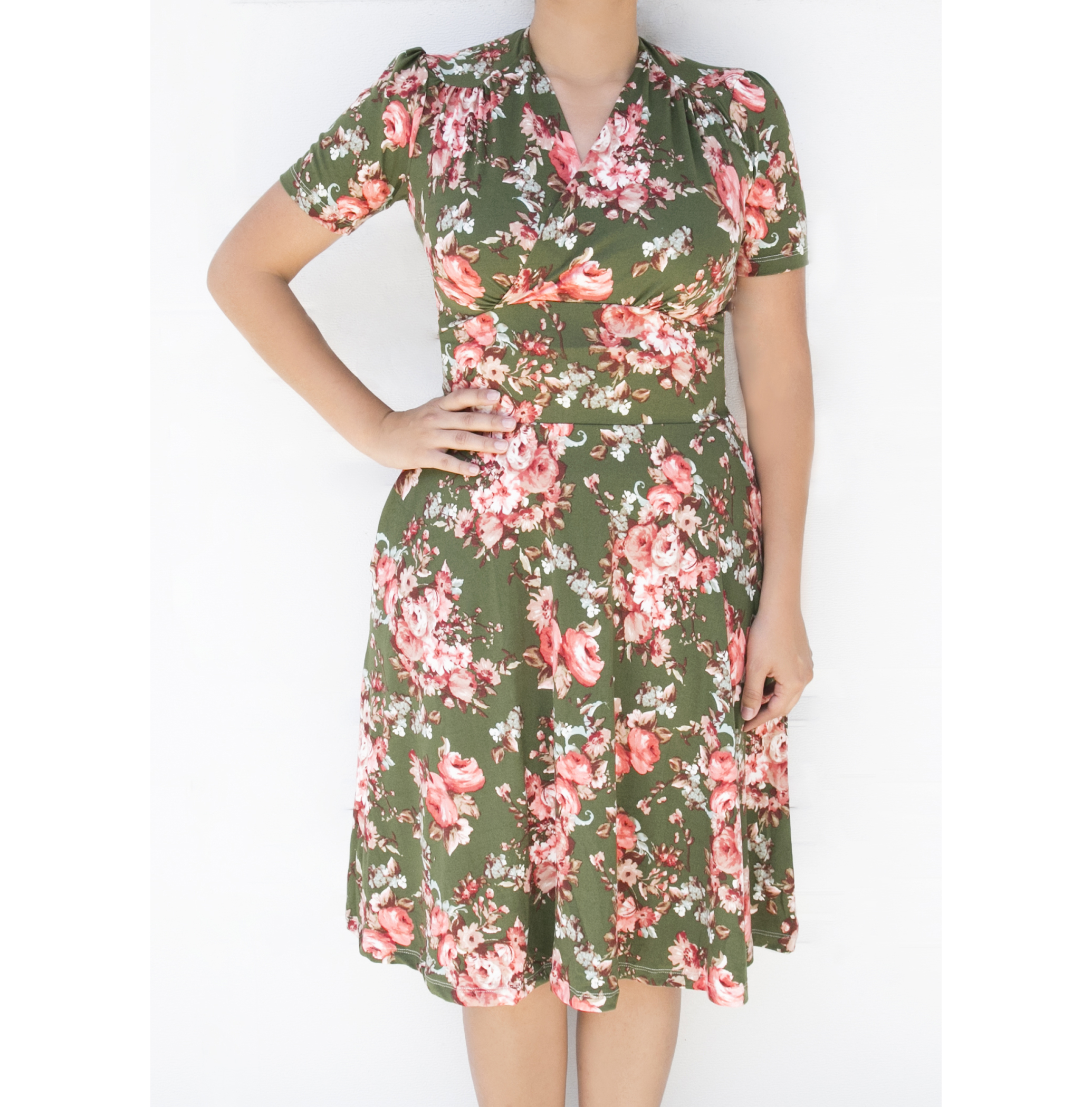 Incredible retro inspired tea dress with empire cut waistline and pockets!
