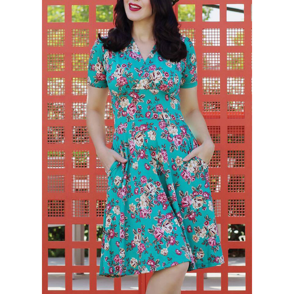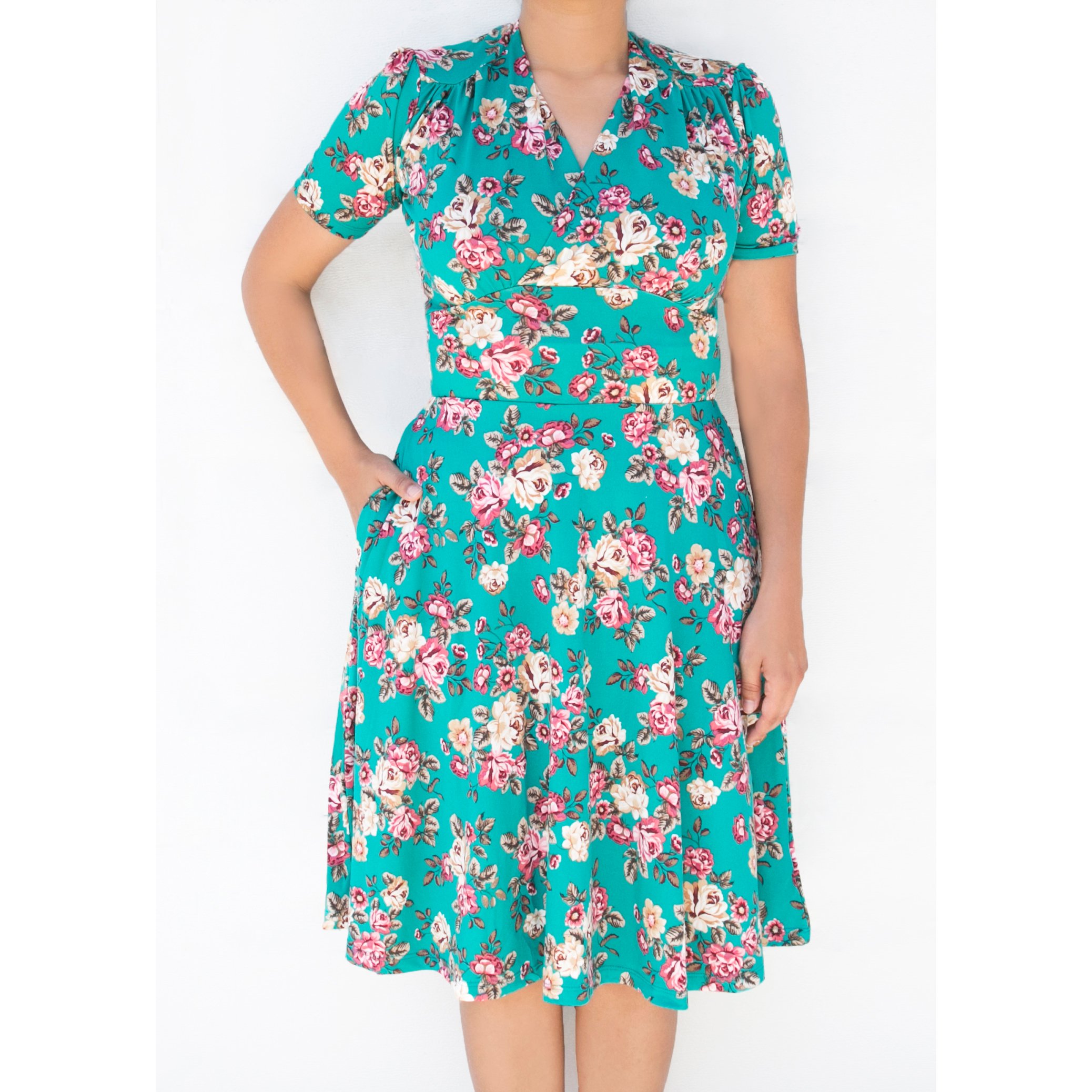 Incredible retro inspired tea dress with empire cut waistline and pockets!