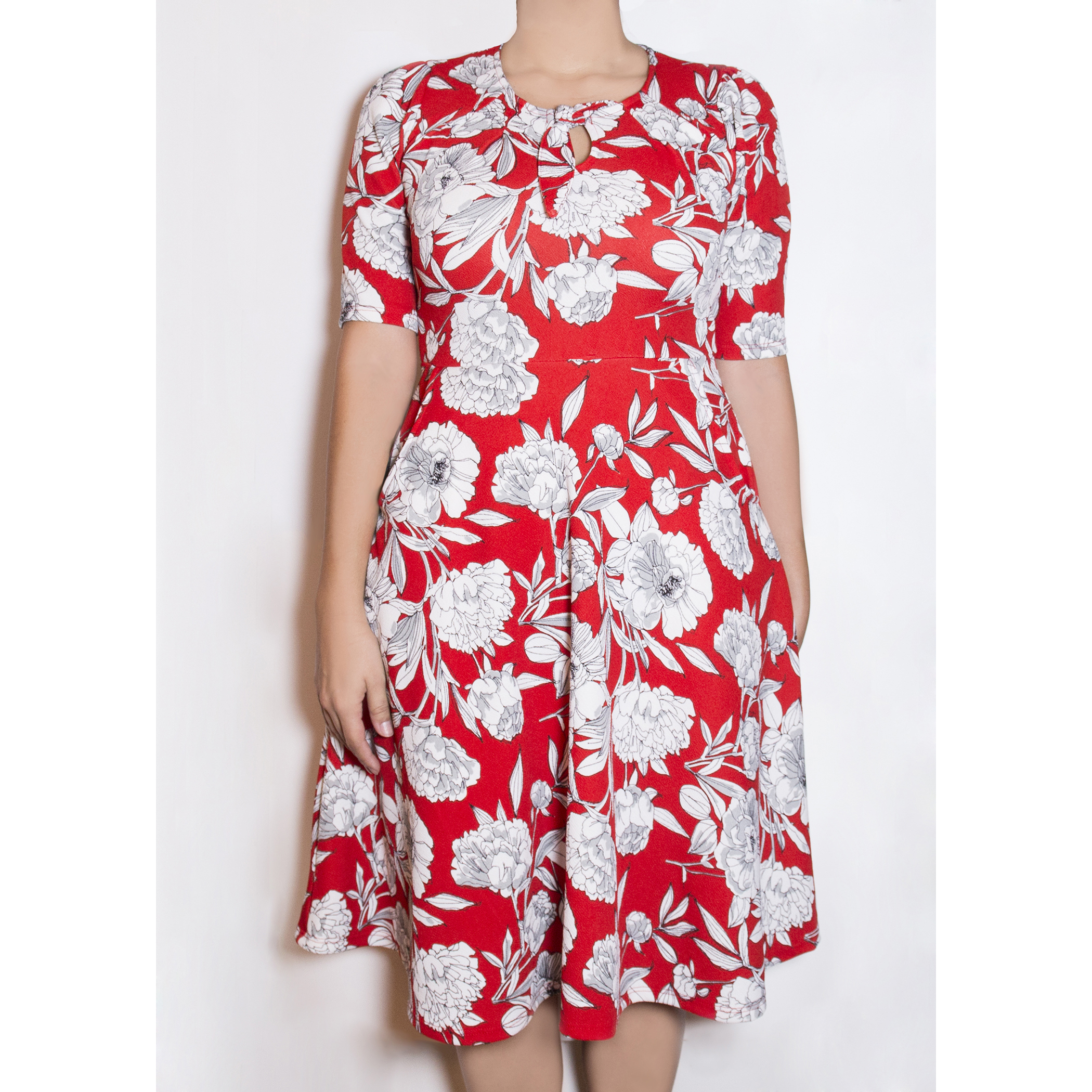 Our Sweet Pea is a gorgeous and flattering retro inspired dress. She is super comfortable and features front pockets, a tie neck at the keyhole neckline, and sleeves which hit at your elbow.