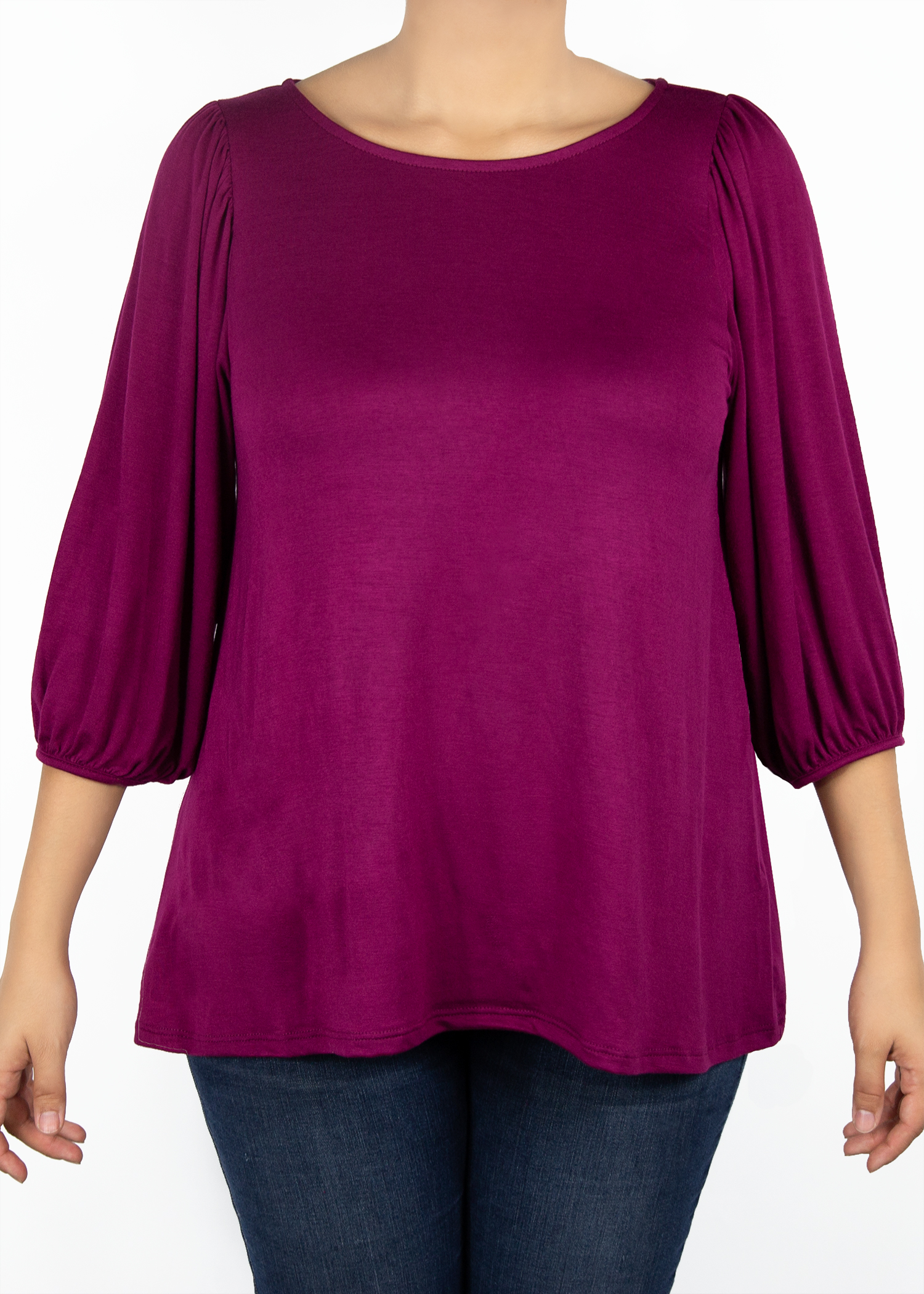 The Violet Top is a comfortable swing tee that will be a favorite in your closet! Featuring a boatneck and a 3/4 billow sleeve with elastic.