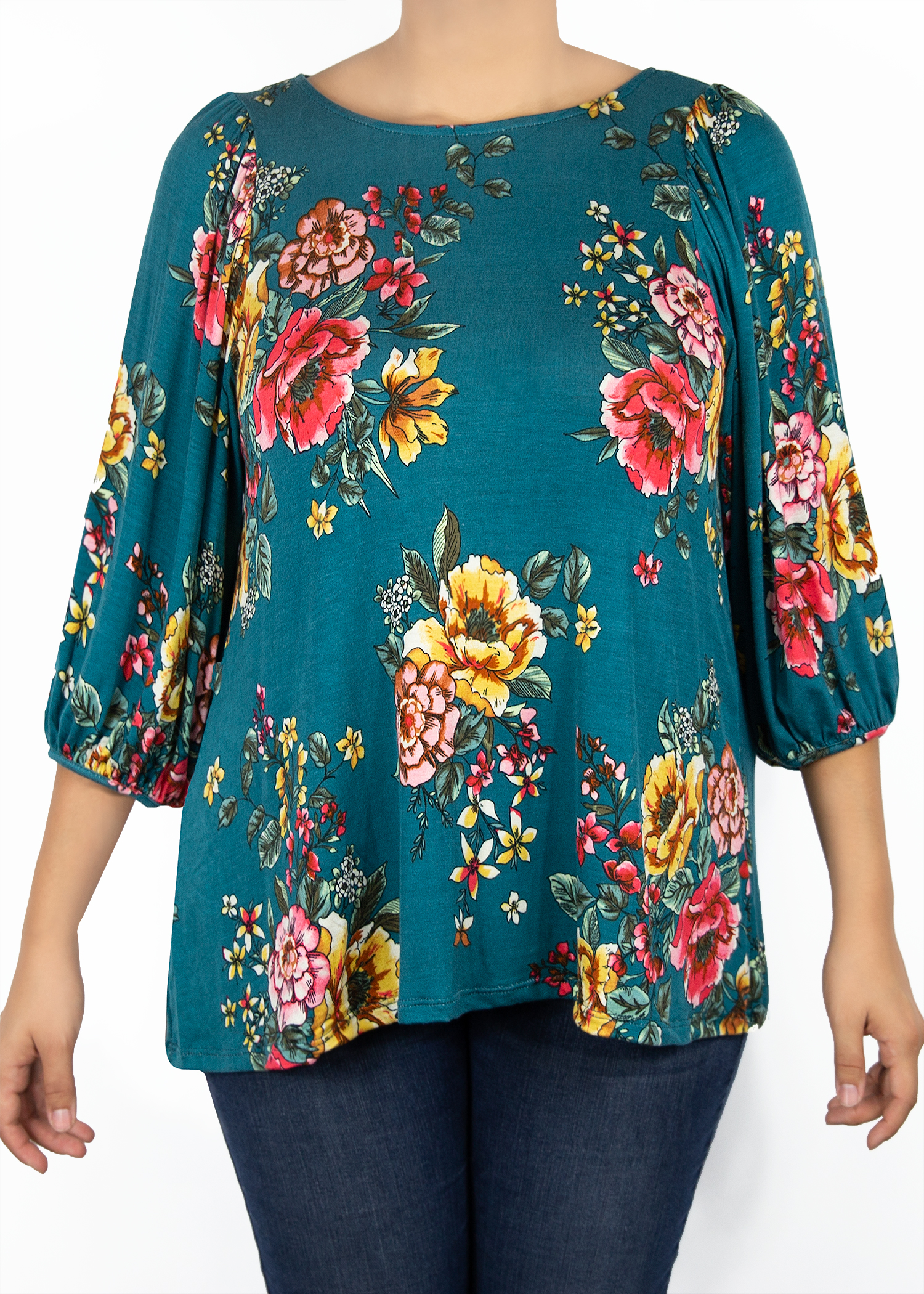 The Violet Top is a comfortable swing tee that will be a favorite in your closet! Featuring a boatneck and a 3/4 billow sleeve with elastic.